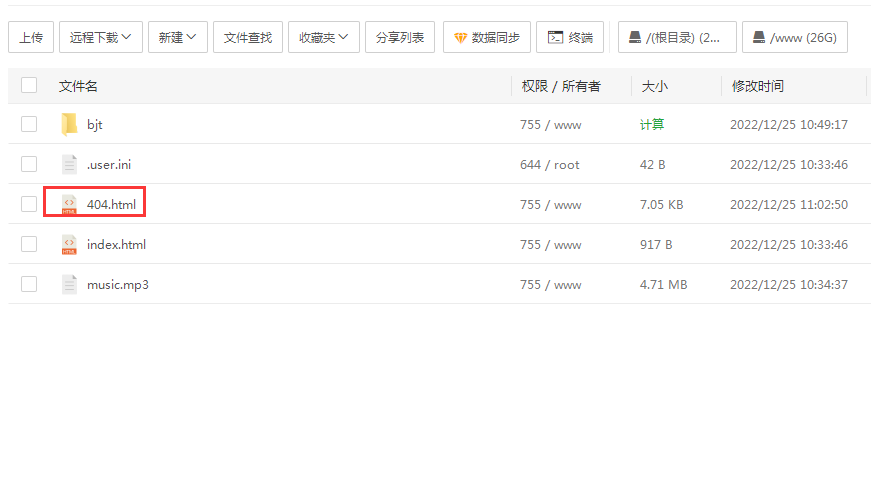 看见一个404.html的文件 编辑 将我们的404.html里的代码复制 放到其中