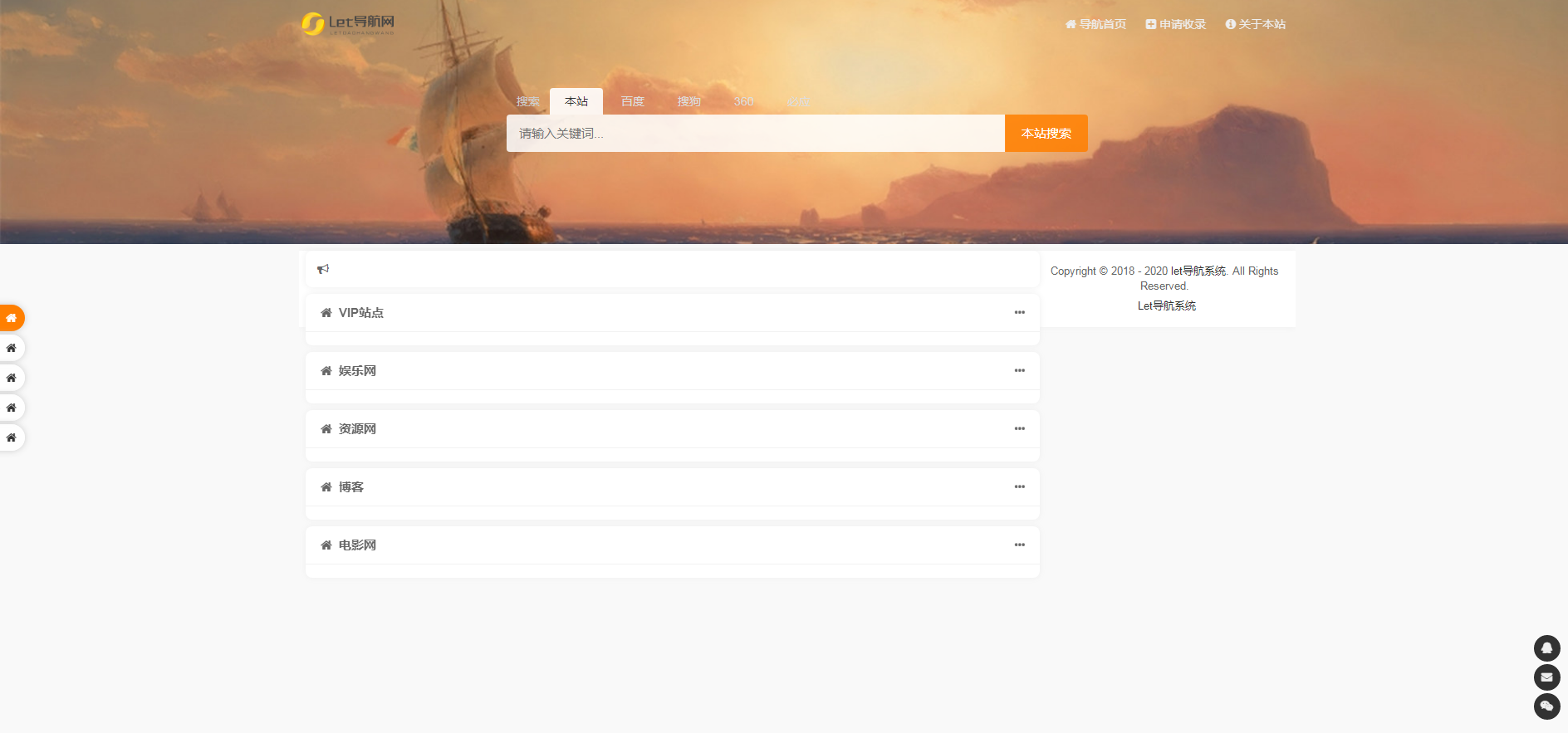 admin 导航源码 整站源码 网站源码 2022-12-27 Let导航源码系统一键安装 两套模板 带后台管理 使用方法: ①:将源码上传至服务器 解压到网站目录 ②:访问域名即可安提示安装,一键安装,方便简单,或者访问你的域名+/install安提示安装。 个人导航 引导页 本站所有源码来自于全网络收集仅供技术人员学习参考研究,严禁非法用途与本站无关 多多源码 » Let导航源码系统一键安装 两套模板 带后台管理