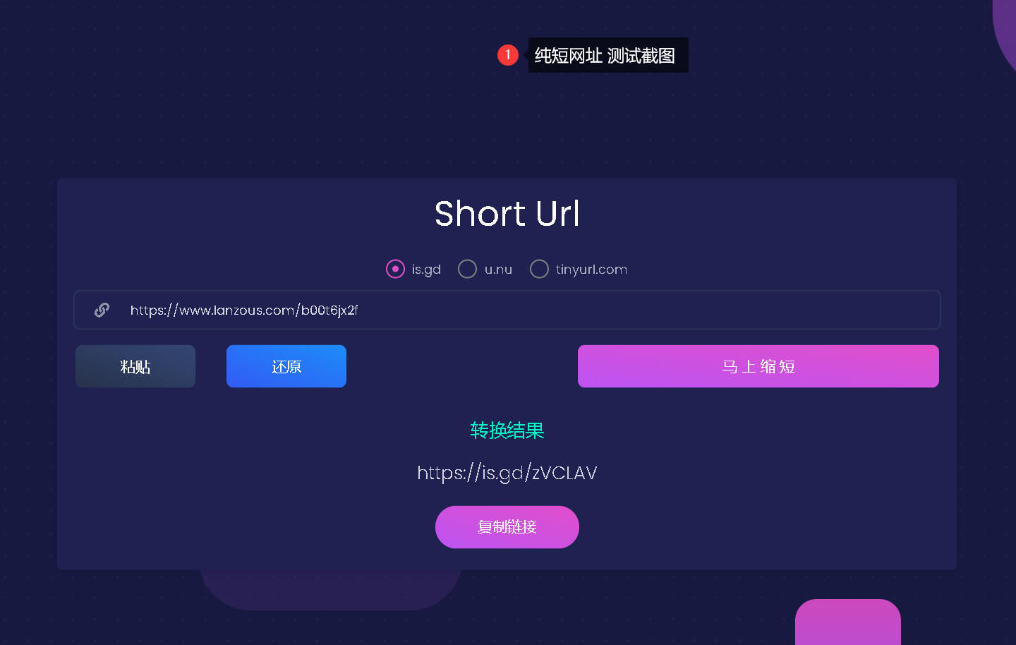 admin 其他源码 整站源码 网站源码 2023-09-21 短网址生成短网址还原源码 搭建教程: ①:将源码上传至虚拟机或者服务器 解压 ②:访问首页即可使用 短网址 本站所有源码来自于全网络收集仅供技术人员学习参考研究,严禁非法用途与本站无关 多多源码 » 短网址生成短网址还原源码